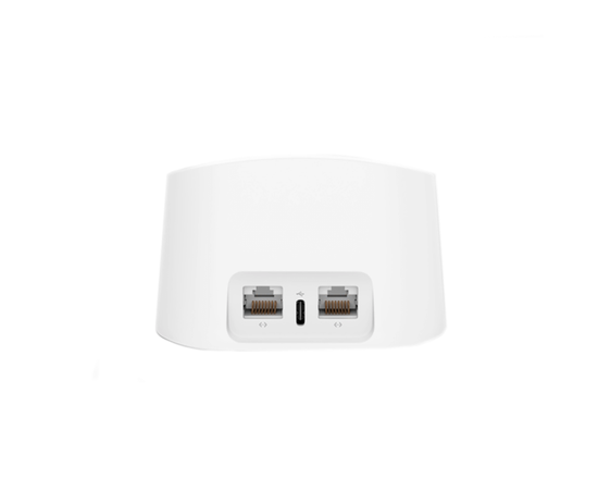 Роутер Eero 6 Dual-Band Mesh System используется для обеспечения Wi-Fi связи в помещении, а также для надежной работы в системе HomeKit. Изящный минималистичный дизайн корпуса рассчитан на то, чтобы не занимать много места при установке в выбранном уголке комнаты. Светодиод на верхней части корпуса отображает состояние Eero 6 Dual-Band. Задняя часть устройства оснащена двумя портами Ethernet и порт для подключения к питанию.