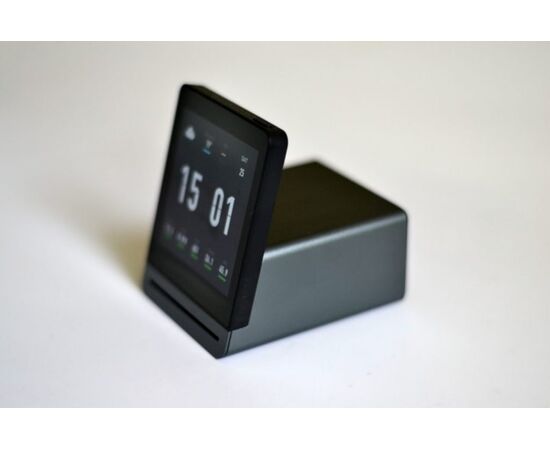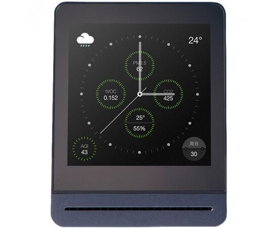 На экране отображается уровень заряда батареи, Wi-Fi подключение, информация о качестве воздуха, прогнозе погоды и индексе UV.