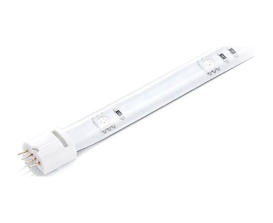 Длина изделия составляет 1 метр. Удлинитель легко присоединяется к основной ленте и автоматически подключается. С лицевой стороны находятся светодиоды, обратная сторона покрыта клейким материалом, благодаря чему пользователь может быстро и без проблем приклеить устройство на любую поверхность. Гибкий материал не поддается повреждениям, а также не портит поверхность установки.