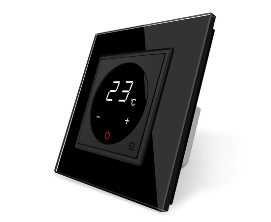 Терморегулятор предназначен для использования в любых видах помещений. С помощью устройства регулируется температура керамических панелей и электрического теплого пола. Лицевая панель регулятора сделана из стекла, информативный дисплей отображает точные показатели заданной температуры. Управление происходит с помощью прикасаний к сенсорному экрану устройства.