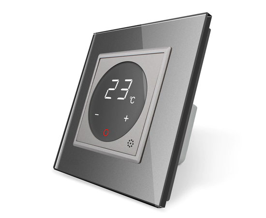 Терморегулятор предназначен для использования в любых видах помещений. С помощью устройства регулируется температура керамических панелей и электрического теплого пола. Лицевая панель регулятора сделана из стекла, информативный дисплей отображает точные показатели заданной температуры. Управление происходит с помощью прикасаний к сенсорному экрану устройства.
