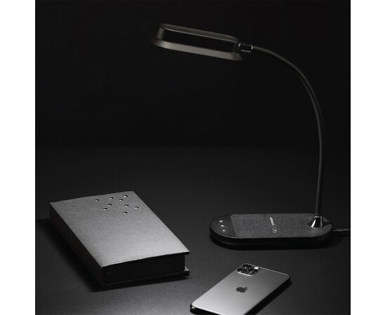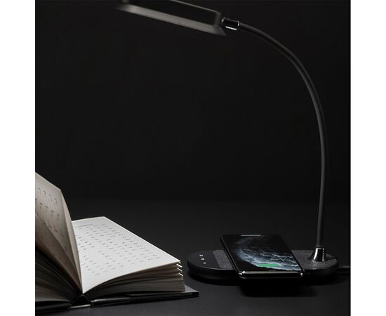 Розумна настільна лампа Momax Q.Led Flex Mini використовується для освітлення робочого простору в будинку чи офісі. Пристрій має бездротову зарядку, завдяки чому можна швидко зарядити гаджети без необхідності шукати додаткову розетку.