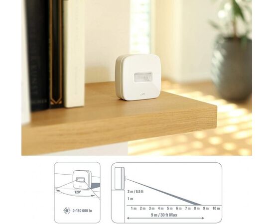 Датчик руху Motion Sensor підходить для встановлення у приміщенні або на вулиці. Герметичний корпус захищений від впливу води, пилу, прямих сонячних променів та перепадів температури. Зовні будинку рекомендується встановлювати пристрій на висоті 2 метри. Поле зору датчика 120 градусів та дальність виявлення руху 9 метрів робить пристрій зручним та корисним елементом системи розумного будинку.