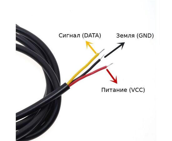 Харчування датчика відбувається через червоний провід (VСС). Пристрій споживає 3-5,5В на годину. Чорний провід (GND) служить для заземлення, а жовтий або синій (DATA) для передачі даних.