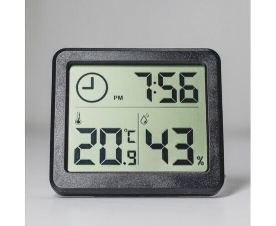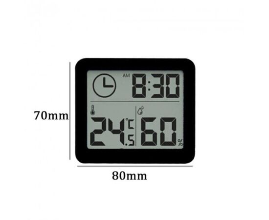 Датчик температури та вологості з годинником підходить для встановлення у будь-яких видах приміщень. Пристрій з високою точністю визначає температуру навколишнього середовища в діапазоні -10 ° С +88 ° С, а також рівень вологості повітря від 10 до 99%.