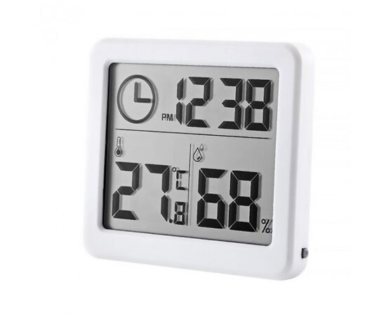 Датчик температури та вологості з годинником підходить для встановлення у будь-яких видах приміщень. Пристрій з високою точністю визначає температуру навколишнього середовища в діапазоні -10 ° С +88 ° С, а також рівень вологості повітря від 10 до 99%.