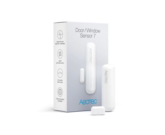 Датчик Aeotec Sensor 7 встановлюється на всі види дверей і вікон. Пристрій складається з датчика і магніту. До датчику підключаються вимикачі для керування сценами в контролері. Для підключення інших детекторів бінарний датчик підключається до Безпотенційні входу.