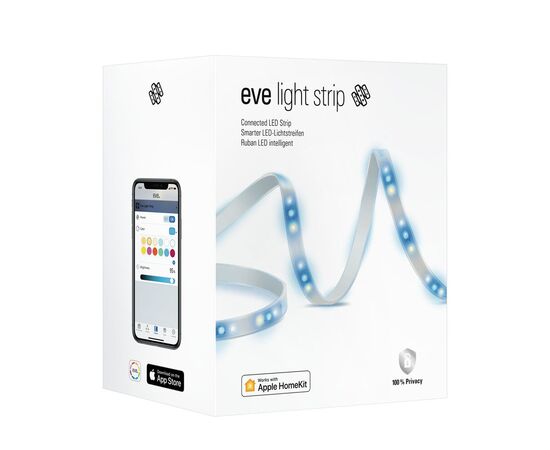 Eve Light Strip підключається до iPhone, Apple TV, iPad або HomePod через Wi-Fi. Клейке покриття забезпечує надійне кріплення на всі види поверхонь. Працює пристрій від блока живлення. Дозволено відрізати стрічку до потрібної довжини, або збільшувати до 10 метрів (подовжувачі продаються окремо). Керування освітленням доступне через екран мобільного додатка та за допомогою голосового асистента.