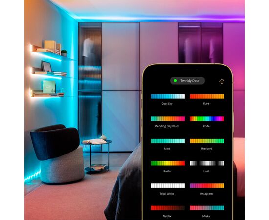 Нитка гірлянди Twinkly Dots дуже гнучка, завдяки чому можна створювати з неї будь-які малюнки без обмежень, не боячись перелому стрічки. Для підсвічування підходить будь-яке обране місце: телевізор та комп'ютер, стіни та стеля, ігрова кімната або домашні меблі.