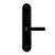 На зовнішній частині дверного замка розташований дзвінок, цифрова клавіатура для введення пароля, ручка з ідентифікатором відбитків та отвір для ключа. Знизу розташований вхід Micro USB для аварійного живлення. Працює пристрій від 8 батарейок типу AA.