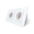 Подвійна розетка Livolo з захисними шторками і заземлюючими контактами і підходить для установки в будь-яких сухих приміщеннях, де потрібен постійний доступ до електроживлення. Підтримує підключення двох приладів з електричними виделками. Також є підключення перехідника при необхідності.