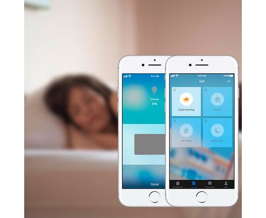 Створення сцен дозволяє швидко та без зусиль створити потрібну атмосферу у потрібний момент. Наприклад, активація сценарію "На добраніч" зменшує яскравість стельового світильника, щоб він працював у режимі нічника, м'яко підсвічуючи кімнату і допомагаючи міцно заснути.