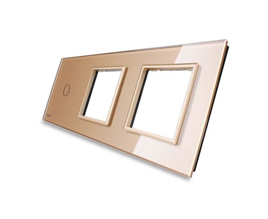 З одного боку під панель встановлюється одноканальний сенсорний вимикач Livolo, з іншого боку надано два місця для розеток або вимикачів.