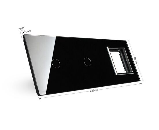 Панель для сенсорних вимикачів Livolo з відділом для розетки зроблена у вигляді цільної скляній рамки. Акуратний зовнішній вигляд і витончена форма стане відмінним рішенням для ванної кімнати, кухні або спальні.