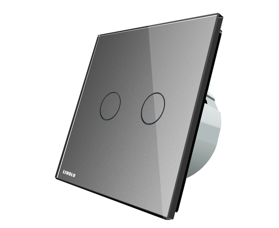Настінний вимикач Livolo розроблений для управління 2 лініями навантаження. Вимкнення і вимикання світла здійснюється доторком до сенсорних кнопок на лицьовій панелі пристрою. Також є дистанційне керування по радіоканалу за допомогою пульта дистанційного керування (в комплект не входить).