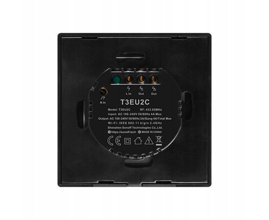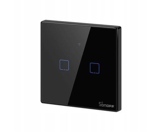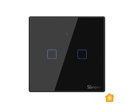 Сенсорний настінний вимикач Sonoff виготовлений у чорному та білому кольорах, щоб користувач підібрав відповідний зовнішній вигляд під інтер'єр свого житла, не порушуючи гармонію простору. Лицьова панель пристрою оснащена двома сенсорними кнопками для увімкнення та вимкнення ламп. Прилад сумісний із платформою Apple HomeKit та підтримує спільну роботу з іншими інтелектуальними гаджетами.