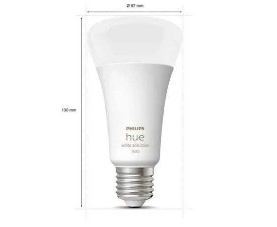 Лампочка Philips Hue оснащена стандартним цоколем E27, завдяки чому підійде для всіх світильників у будинку з відповідним патроном. Витончений зовнішній вигляд пристрою стане чудовим доповненням світильників із закритими та відкритими плафонами. Лампа підтримує 16 мільйонів кольорів, а також тепле жовте та холодне біле світіння.