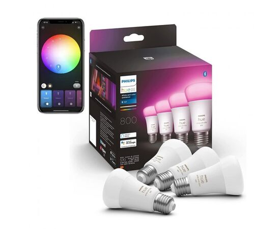 Розумна лампочка Philips Hue підтримує 16 мільйонів кольорів, налаштування холодного та теплого білого світла та дистанційне керування через мобільний додаток Hue. Пристрій інтегрується в Apple HomeKit, Google Assistant, Amazon Alexa.