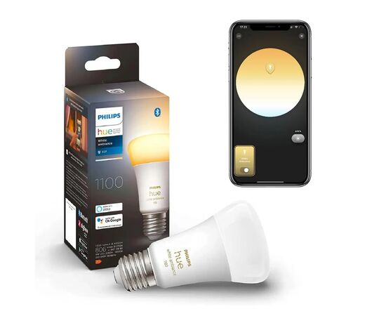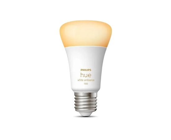 Лампочка Philips Hue White Ambiance використовується в приміщеннях будь-якого типу як основне джерело освітлення. Пристрій підтримує 50 000 відтінків теплого жовтого та холодного білого світла. Розумна LED лампа підключається до мобільної програми або голосового помічника для дистанційного керування.