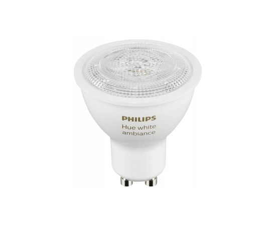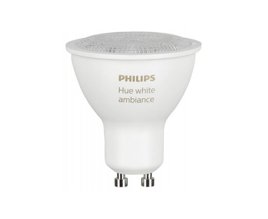 Універсальний дизайн лампочки вдало впишеться у простір. Міцні матеріали корпусу забезпечують тривалий термін експлуатації. GU10 White Ambiance працює в екосистемі Apple HomeKit за наявності шлюзу Philips Hue Bridge 3.