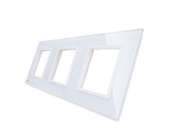 Рамка Livolo тройная BB-C7-SR/SR/SR предназначена для трех розеток, которые монтируются в одном месте. Благодаря гладкой стеклянной поверхности, место установки стает опрятным и удобным.