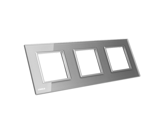 Рамка Livolo тройная BB-C7-SR/SR/SR предназначена для трех розеток, которые монтируются в одном месте. Благодаря гладкой стеклянной поверхности, место установки стает опрятным и удобным.