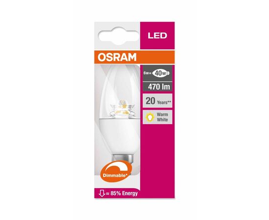 Светодиодная LED лампа OSRAM SUPERSTAR B40 6W 470lm E14 теплый белый, диммируемая, прозрачная
