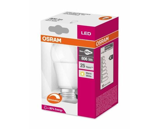 Светодиодная LED лампа OSRAM SUPERSTAR A60 10W 806lm E27 теплый белый, диммируемая, матовая характеризуется классической грушевидной формой. Благодаря гармоничному внешнему виду, лампочка подходит для использования в любом помещении и совместима со всеми светильниками в доме. Изделие светит теплым белым светом, мягко влияет на зрение человека и не раздражает глаза. Представленная светодиодная лампа станет отличным выбором для дополнения системы освещения.