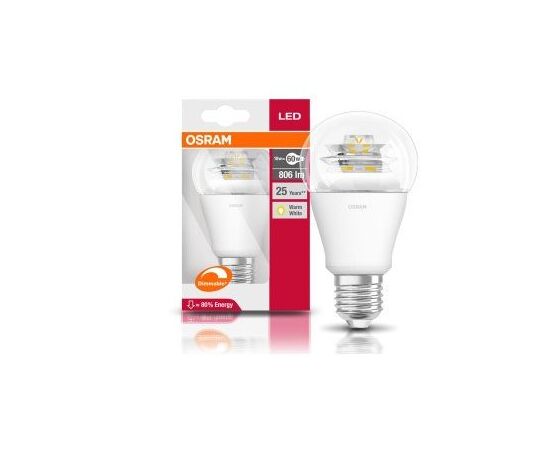 Светодиодная LED лампа OSRAM SUPERSTAR A60 10W 806lm E27 теплый белый, диммируемая, прозрачная