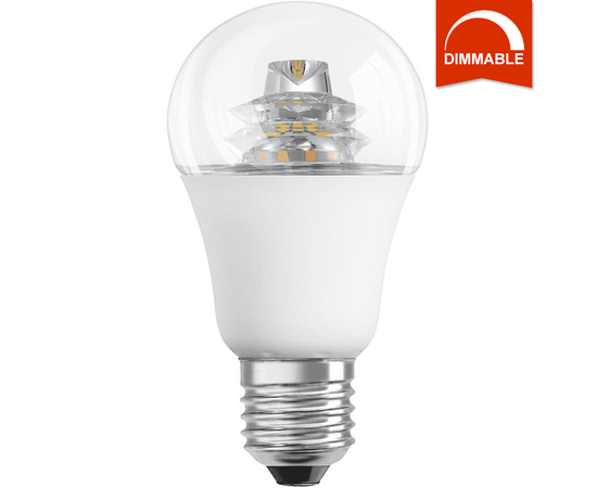 LED лампочка OSRAM SUPERSTAR используется в любых видах помещений. Стандартный цоколь E27 подходит для классических осветительных приборов с подходящим патроном. Управление лампой происходит с помощью диммера, настраивается яркость и мощность свечения лампы. Прозрачный рассеиватель выглядит эстетично и практично.