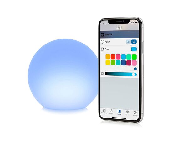 К смартфону лампа подключается через Bluetooth после установки приложения Home app или Eve app. В HomeKit доступно управление голосовыми командами с помощью Siri. В приложении настраивается таймер для включения и выключения света, цвет свечения, яркость и температура освещения.