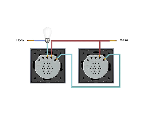 Проходной выключатель устанавливается по специальной схеме вместе с другими проходными выключателями. Устройство используется для установки в длинных помещениях, чтобы включать и выключать свет с разных концов комнаты.