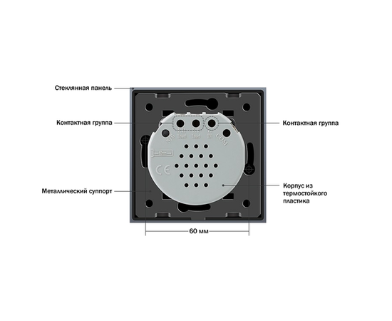 Сенсорный выключатель Livolo оснащен таймером, который отключает нагрузку спустя 30 секунд после включения. В представленной модели недоступна корректировка таймера.