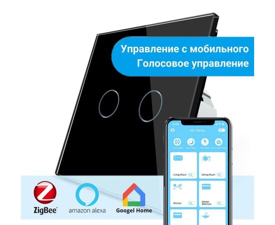 Работает выключатель по протоколу ZigBee. Через приложение пользователь получает доступ к отслеживанию статуса устройств, включению и выключению света в режиме реального времени. Благодаря удаленному доступу, владелец дома всегда сможет контролировать источники света в целях экономии и безопасности.