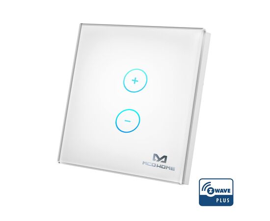 Диммер Home Glass Touch Dimmer используется для контроля уровня освещенности помещения. Дистанционное управление светом происходит через протокол Z-Wave. Доступно использование диммера вместе с другими устройствами умного дома. На лицевой панели MCOEDT411 расположены две сенсорные кнопки, с помощью которых увеличивают или уменьшают яркость свечения ламп.