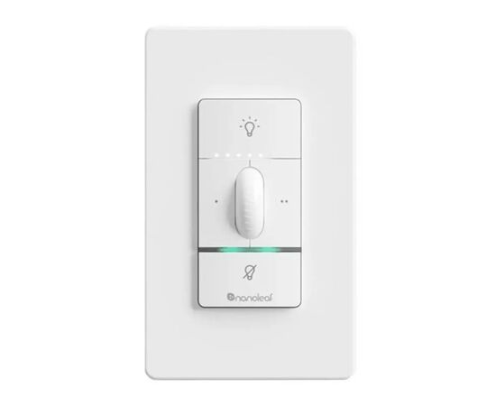 Умный выключатель Nanoleaf Sense+ Controls имеет функцию сенсорного управления, которая позволяет изменять яркость и температуру света одним касанием. Также устройство поддерживает голосовое управление.