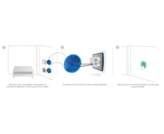 Luxy Smart Light подходит для использования в качестве фоновой подсветки. Выбирая любимый цвет освещения, пользователь сможет создать уютную атмосферу в комнате, настраиваясь на нужный лад. Теплые мягкие цвета помогают расслабиться после насыщенного рабочего дня и способствуют быстрому засыпанию. Для комфортного пробуждения по утрам и прилива энергии достаточно выбрать холодный цвет подсветки, чтобы бодро начать день и настроиться на рабочий лад. Также умный светильник используется как выключатель для подключенных осветительных приборов.