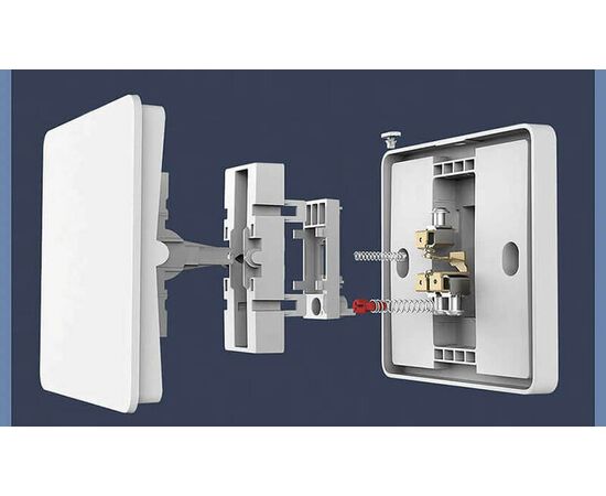 Надежный механизм выключателя выдерживает до 40 тысяч нажатий. Контакты изготовлены из латуни с посеребренными площадками, что улучшает проводимость и защищает от окисления.